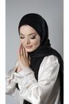 Siyah Pratik Hazır Geçmeli Tesettür Şal Örme Kumaş Taş Desenli 2118T_01