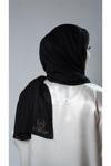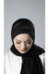 Hürrem Bone Siyah Pratik Hazır Geçmeli Tesettür Şal Örme Kumaş Taşlı Yıldız Desenli 2118Y_01