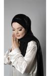 Siyah Pratik Hazır Geçmeli Tesettür Şal Örme Kumaş Taşlı Yıldız Desenli  2118Y_01
