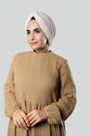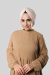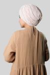 Hürrem Bone Pudra Pratik Hazır Geçmeli Tesettür Bone Sandy Kumaş Taçlı Büzgülü Şifon Atkılı 1208A_06