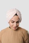 Hürrem Bone Pudra Pratik Hazır Geçmeli Tesettür Bone Sandy Kumaş Taçlı Büzgülü Şifon Atkılı 1208A_06 - Image 1