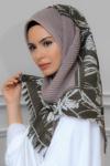 Giverny Kahve Desenli Eşarp Bambu Yaprak Dijital Baskılı 202204_14