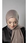 Hürrem Bone Vizon Pratik Hazır Geçmeli Tesettür Şal Örme Kumaş Taşlı Çiçek Desenli 2118C_10