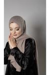 Hürrem Bone Koyu Vizon Pratik Hazır Geçmeli Tesettür Şal Örme Kumaş Taş Desenli 2118T_38