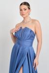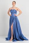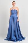 Kadın Straplez Sırttan Çapraz Bağlamalı Maxi Boy Abiye Elbise 5703 Indigo