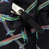 Mavi ve siyah renk paletinde tamamen telden ilham alan bir baskıyla tasarlanmıştır.