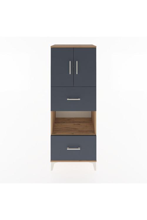 Hyperion Dolap 3 Raflı 2 Çekmeceli 2 Kapaklı 60x44x163 Çam-Antrasit