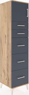 Hyperion Dolap Tek Raflı 5 Çekmeceli Tek Kapaklı 44x44x182 Çam-Antrasit