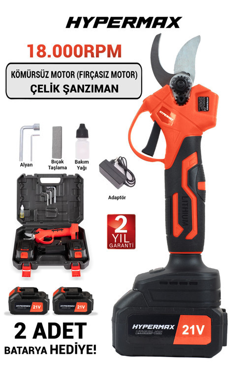 Bahçenizdeki ağaçların ve bitkilerin bakımını daha kolay ve hızlı hale getiren Çift Akülü Çelik ŞanzumanGöstergeli Şarjlı Dal Ağaç Kesme Bağ Budama Makası ile tanışın! Bu güçlü ve pratik budama makası, 40 mm kesme kapasitesi ile en kalın dalları bile zahmetsizce keser.