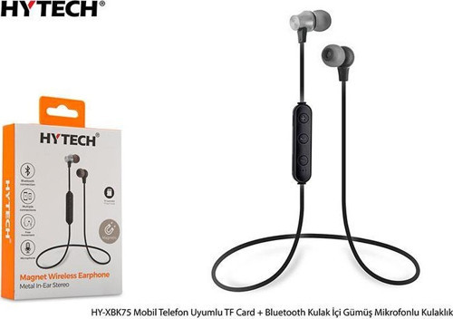 Hytech HY-XBK75 Mobil Telefon Uyumlu TF Card + Bluetooth Kulalk İçi Gümüş Mikrofonlu Kulaklık