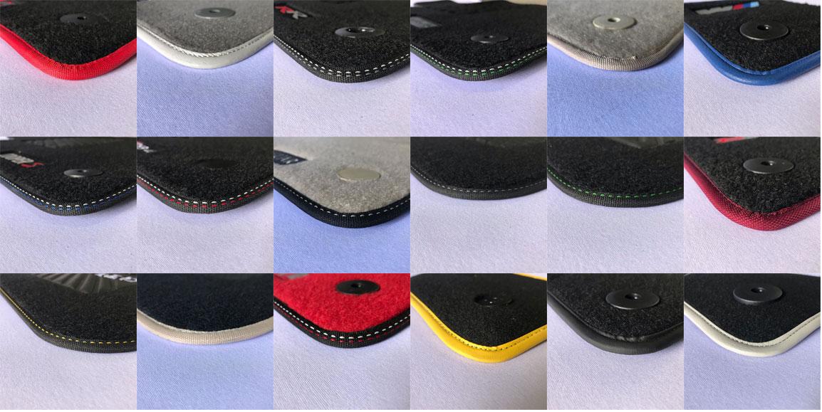 Üretimini yaptığımız halıların kenar dikiş renkleri siyah, pembe, bej, mavi, yeşil, gri, turuncu, kırmızı, beyaz ve sarı. Aşağıdaki renklerden istediğinizi seçebilirsiniz.