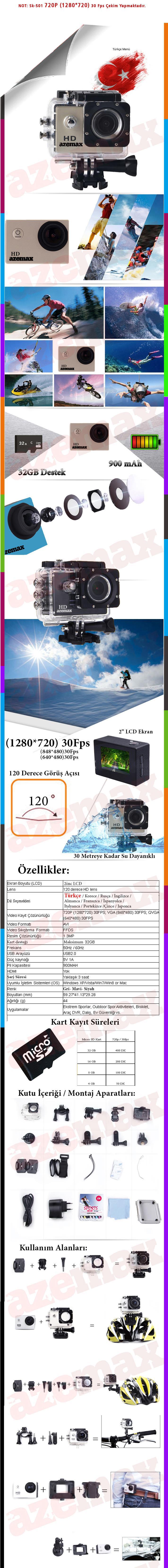 Azemax Sk-501 720P Hd Aksiyon Kamera