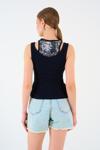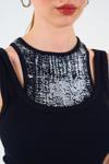 İçi Baskılı Halter Yaka Kaşkorse Atlet - Siyah