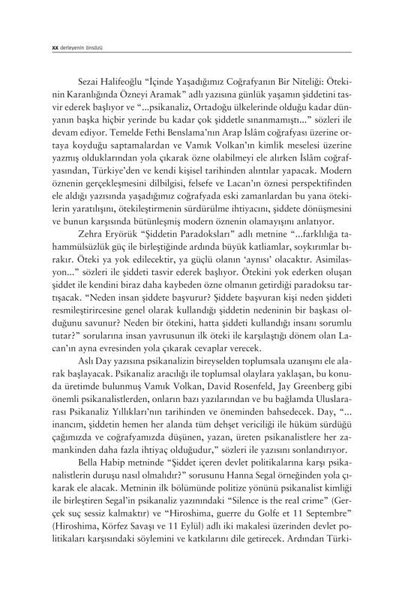 İstanbul Psikanaliz Eğitim, Araştırma ve Geliştirme Derneği (Psike İstanbul) tarafından düzenlenen “İçimizdeki Şiddet, İçinde Yaşadığımız Şiddet” başlıklı sempozyumdaki sunumların yazılı hale getirilmesi ile ortaya çıkan bu kitapta psikanalitik kuram ve uygulamalardan yola çıkarak şiddet ve ruhsallık ilişkisi hakkında farklı tartışmaları sanat, tarih ve güncel meseleler eşliğinde takip edeceksiniz.