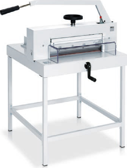 Ideal 4305 Profesyonel Kollu Giyotin 475 mm ölçüsüne kadar geniş formatta kesim yapar, 70 mm kesme yüksekliği, yüksek kaliteli solingen çeliğinden kesme bıçakları, saf çelik bıçak taşıyıcısı, özel olarak sertleştirilmiş çelikten yapılmış ayarlanabilir bıçak kılavuzları, milli el çarklı sıkıştırma ünitesi, kırank milli kılavuzlu manuel arka poza, ön tablada mm ve inch ölçü göstergesi, metal konstrüksiyon. Teknik Özellikleri • Kesme Kapasitesi : 800 Yaprak • Tabla Ölçüsü : 47.5 x 45.5 cm • Kesme genişliği : 47.5 cm • Sıkıştırma : Manuel • Kağıt Hizalama : Manuel • Ölçüler : 590x1000x890 mm • Masa Genşliği : 100 cm • Ağırlık : 85 kg • Garanti : 2 yıl