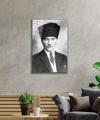 Artarilion Metal Çerçeveli Cam Atatürk Tablo Modeli Şapkalı Atatürk Görseli Dikey Duvar Tablosu