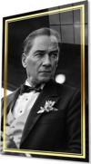 İdealizbiz Atatürk Siyah Beyaz Dikey Cam Tablo Hediyelik Büyük Tablo Ev Ofis Dekoru
