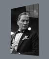 İdealizbiz Atatürk Siyah Beyaz Dikey Cam Tablo Hediyelik Büyük Tablo Ev Ofis Dekoru