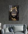 idealizbiz Sarı Gözlü Aslan Hayvan Portresi Cam Tablo, Ev Ve Ofis Duvar Dekoru, Hediyelik Büyük Cam Tablo