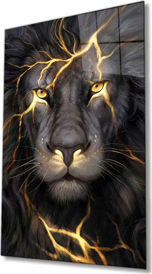 idealizbiz Sarı Gözlü Aslan Hayvan Portresi Cam Tablo, Ev Ve Ofis Duvar Dekoru, Hediyelik Büyük Cam Tablo