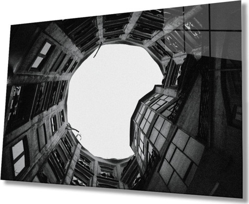 idealizbiz Siyah Beyaz Aşağıdan Yukarı Doğru Geometrik Cam Tablo, Ev Ve Ofis Duvar Dekoru Hediyelik, Dayanıklı