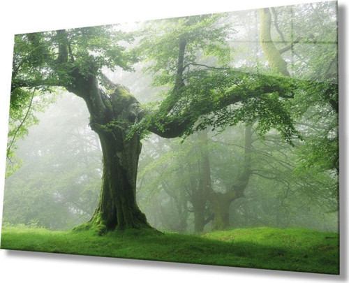 idealizbiz Yeşil Ağaç Cam Tablo, Ev Ve Ofis Duvar Dekoru Hediyelik Büyük Tablo Dayanıklı Cam