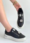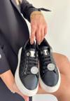 Jista Siyah Cilt Gümüş Detaylı Bağcıklı Spor Ayakkabı - Image 1