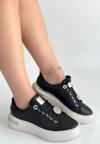 Ftt Jista Siyah Cilt Gümüş Detaylı Bağcıklı Spor Ayakkabı