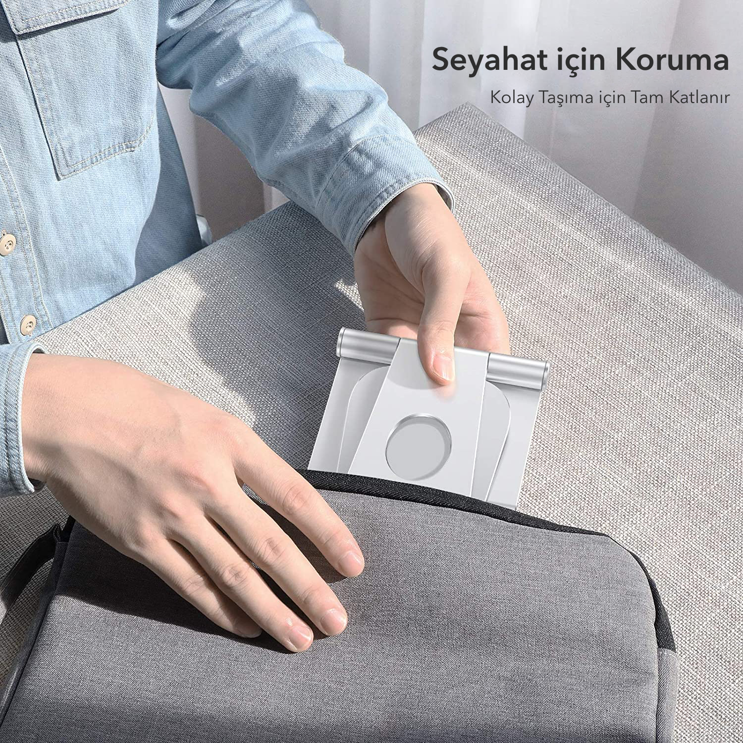 5. Seyahat sırasında kolay taşıma için tam katlanır. (15 x 13 cm - 300gr.)