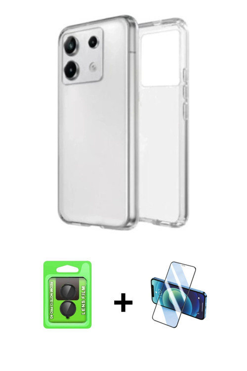 Redmi Note 13 Pro 4G Kılıf Zirve Doku - Siyah 3D Antistatik Cam Ekran Koruyucu + Siyah Raze Metal Kamera Lens