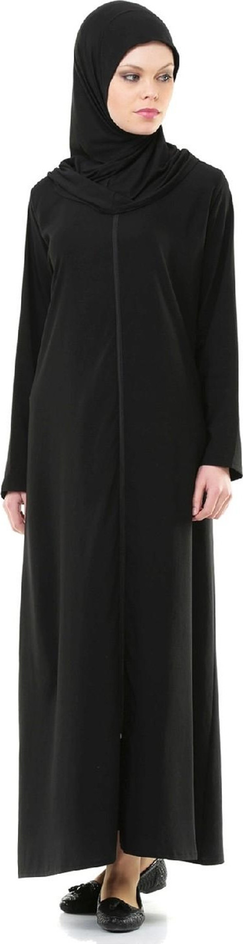 Özellikle çalışan bayan kesimin iş yerlerinde kıyafetlerinin üzerine geçirebilecekleri, önden fermuarlı ve başka bir örtü aramalarına gerek bıraktırmayacak, kendinden dikişli, örtülü namaz elbisesi modelidir. Hem hafiftir her yere taşınabilir, hem kullanışlıdır. Siyah rengin asaletinden zarif bir namaz elbisesidir. Pamuklu viskon kumaştan dikilmiştir.