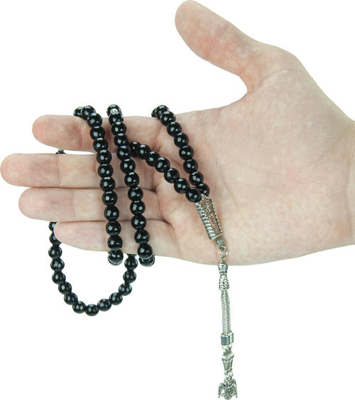 99lu Siyah Doğal Akik Taşı Tesbih