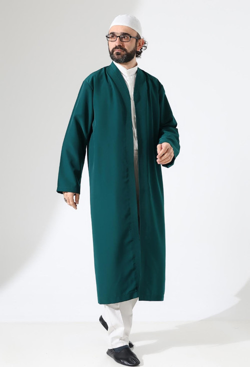 Erkek Namaz Elbisesi Buhara Yaka Cepli Namaz Cübbesi Yeşil - (Sfa)