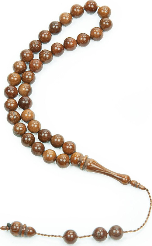 Bu ürün kuka tesbih kuka ağacından yapılmıştır. Kuka tropikal bir ağacın meyvesidir. Bu meyve Hindistan cevizine benzer ser yapıda bir meyvedir ve kuka tesbihlerde bu ağacın sert meyvesinden yapılmaktadır. Kuka meyvesi Endonezya ve Hindistan gibi ülklerde yetişir. Bu üründe bu kuka meyvesinde üretilmiştir. Üretilen bu tesbih en kaliteli işçilikle üretilerek, tesbihi kınalayarak kuka tesbihe görsellik katılmıştır. Kuka tesbih geçmişi en eski dönemlere dayanan bir tesbih türüdür. Daha önceleri kuka tesbih hem tebih hemde farklı amaçlarda kullanılırdı. Kuka tesbihi kullanırken kuka meyvesinin antibakteriyellik özelliğinden faydalanabilirsiniz. Kuka tesbih Osmanlı döneminde antibakteriyel özelliğinden hekimler tarafından sağlık sektöründe kullanılırdı. Bunun sağlık sektöründe kullanılması mikropları öldüren güçlü antibakteryel özelliğidir. Osmanlı döneminde bu unsura okadar önem verilirmişki, kuka tesbih kullanmayan hekimler hijyenik olmadıkları için saraylara bile alınmazmış ve halk tarafındanda muayne olmak için tercih edilmezmiş. Bu özelliğinden dolayı sadece sağlık sektöründe değil halk arasında da yaygın olarak kullanılırmış. Kuka ağacı ayrıca kullanıldıkça kararan ve değeri artan bir yapıya sahiptir. Hem bu özelliklere sahip olması hemde estetik görünümlü tesbihleriyle kuka ağacı tesbih tarih boyunca çok rabet edilen ve kullanılan türlerinden olmuştur ve olmaya da devam etmektetir.