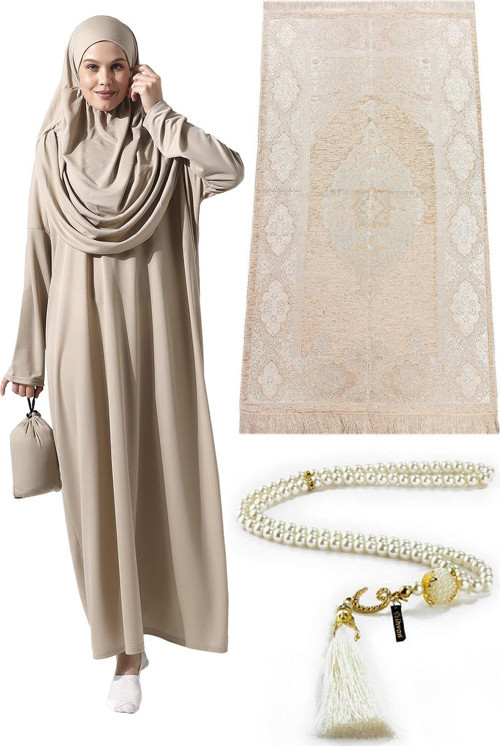 Tek Parça Namaz Elbisesi - Seccade - Tesbih - İbadet Seti - Vizon