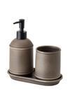 Malzeme Sıvı sabunluk/ Diş fırçalık:Stoneware, Renkli sır Pompa:ABS plastik, Polipropilen plastik, Polipropilen plastik, Polietilen plastik, EVA plastik, Cam, Paslanmaz çelik Tepsi:Stoneware, Pigmentli cila