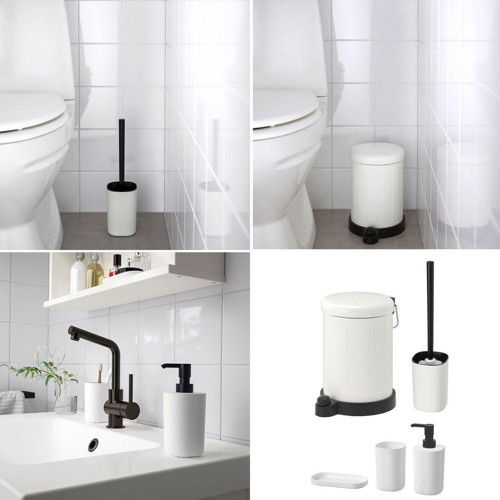 IKEA 5'Li Banyo Seti Çöp Kovası Diş Fırçalık Sabunluk Tuvalet Fırçası Beyaz Galvaniz Çelik Ve Plastik