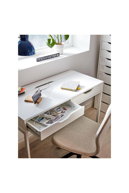 Sade ve akıllı tasarımıyla karışık kabloları görünmez hale getirerek, hoş ve güzel bir görünüm oluşturur. Arka kısmın cilalı olması nedeniyle odanın ortasına yerleştirebilirsiniz her yönden güzel görünecektir. Kabloların ve fişlerin toplanabilmesi için yerleşik kablo düzenleme sistemi göz önünde değil ama el altında. Stoperler çekmecenin çok fazla açılmasını önler. Cilalı arka yüzeyi sayesinde odanın ortasında bile kullanılabilir.