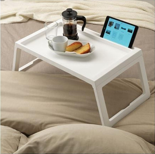 Klipsk Katlanır Yatak Keyif Tepsisi Beyaz Tepsi Sehpa Ürün Boyutları: 56x36x26 cm Ürün Detayları: - Katlanabilir ayaklar yatak tepsisini fazladan yer kaplamadan saklamayı kolaylaştırır. - Tabletinizi yivli kanal içine güvenle yerleştirebilirsiniz. - Yatak tepsisinin kablo çıkış deliği sayesinde tabletinizi kolayca şarj edebilirsiniz.