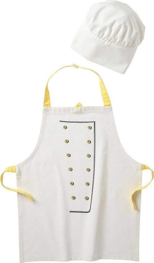 İçindekiler: Çocuk önlüğü uzunluğu 57 cm ve şef şapkası daire genişliği 49-55 cm.