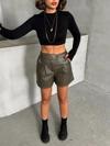 Çift fermuarlı deri şort kahve h24394 - Image 1