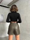Ruby Yüksek bel parçalı double kumaş şort s25312