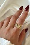 Leostone İkili Bal Peteği Tasarım Zirkon Taşlı Ayarlanabilir Kadın Yüzük