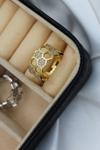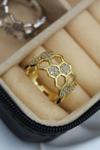 İkili Bal Peteği Tasarım Zirkon Taşlı Ayarlanabilir Kadın Yüzük
