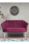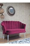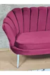 Zafir İkili İstiridye Beyaz Boyalı Sivriltme Ayak Çay Seti Koltuk Tekli Berjer , İkili Berjer Koltuk Bordo Renk 110 x 48 Boyut/Ebat
