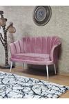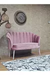 Zafir İkili İstiridye Beyaz Boyalı Sivriltme Ayak Çay Seti Koltuk Tekli Berjer , İkili Berjer Koltuk Pembe Renk 110 x 48 Boyut/Ebat