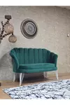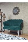 Zafir İkili İstiridye Beyaz Boyalı Telli Ayak Çay Seti Koltuk Tekli Berjer , İkili Berjer Koltuk Yeşil Renk 110 x 48 Boyut/Ebat
