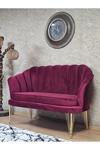 Zafir İkili İstiridye Gold Kaplama Telli Ayak Çay Seti Koltuk Tekli Berjer , İkili Berjer Koltuk Bordo Renk 110 x 48 Boyut/Ebat