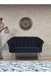Zafir İkili İstiridye Krom Kaplama Sivriltme Ayak Çay Seti Koltuk İkili Berjer , İkili Berjer Koltuk Siyah Renk 110 x 48 Boyut/Ebat