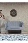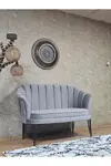 Zafir İkili İstiridye Siyah Boyalı Telli Ayak Çay Seti Koltuk Tekli Berjer , İkili Berjer Koltuk Gri Renk 110 x 48 Boyut/Ebat